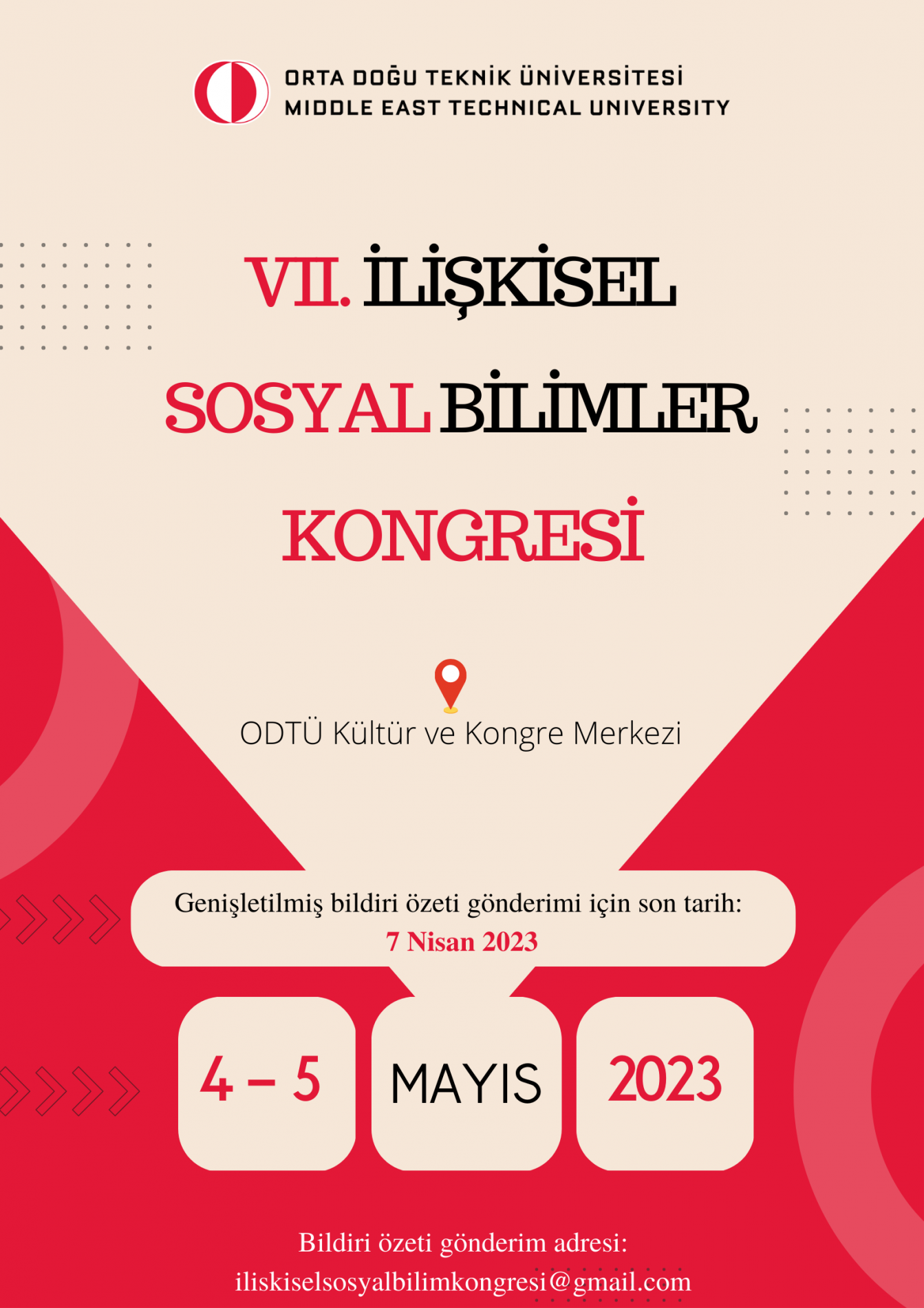 VII. İlişkisel Sosyal Bilimler Kongresi 4-5 Mayıs 2023 tarihleri arasında Orta Doğu Teknik Üniversitesi'nde gerçekleştirilecektir.